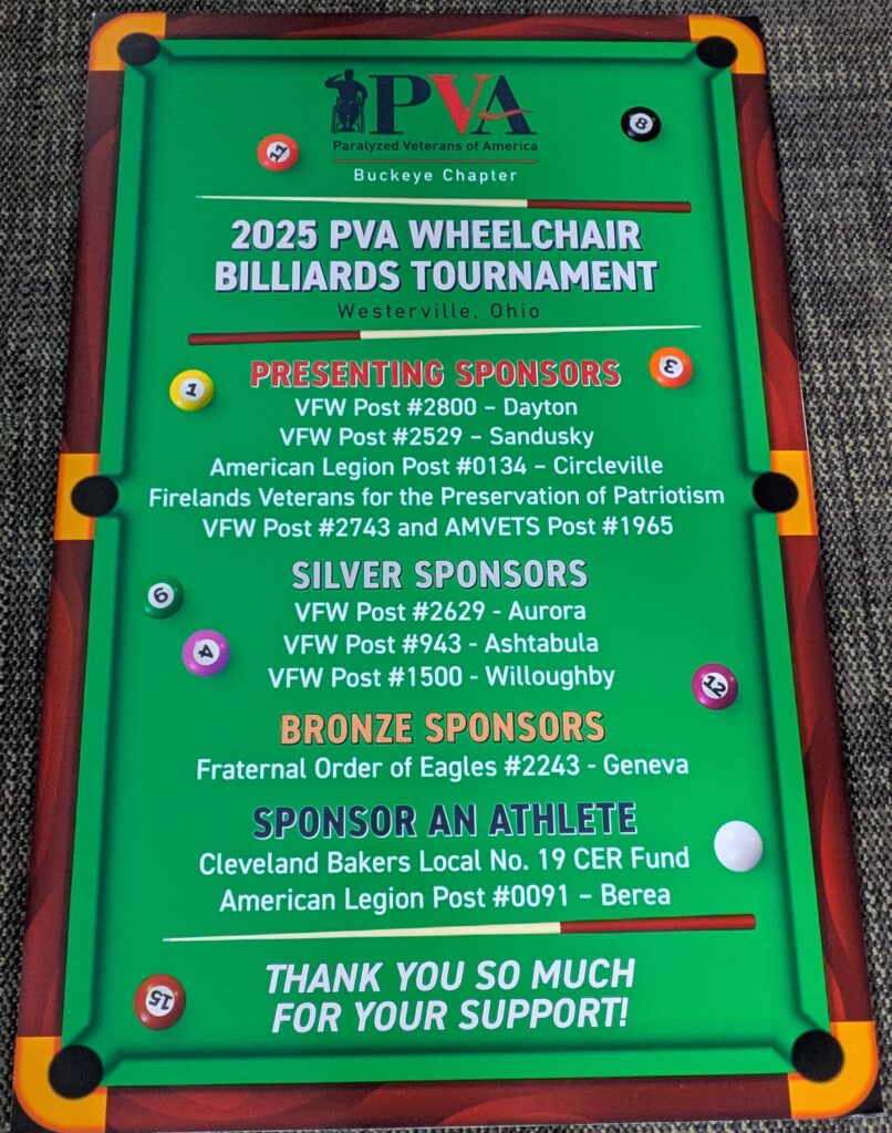 Thank you to all who participated in The PVA Billiards Tournament Series Westerville OH November 14-15, 2025